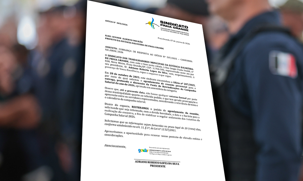 O presidente Adriano Pixoxó, GCM de carreira e preocupado com a situação, encaminhou ofício em caráter de urgência nº 013/2026 ao prefeito Alberto Mourão, com cópia ao Secretário de Assuntos de Segurança Pública (Seasp), Maurício Vieira Izumi, cobrando providências imediatas frente à desvalorização da corporação.