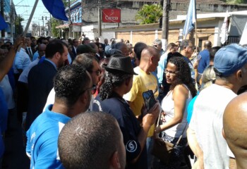 A manifestação foi diante do fórum trabalhista de Santos, na Rua Brás Cubas, 158, Centro, com participação de vários sindicatos.