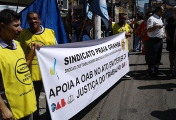 Além da OAB, a manifestação foi convocada pela associação dos advogados trabalhistas de Santos (AATS). Associação brasileira dos advogados trabalhistas (Abrat).